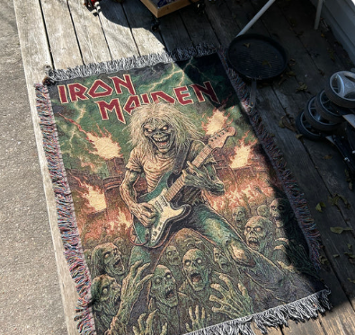 Nothing says “Up the Irons” like a handmade Iron Maiden blanket under the tree. 🔥